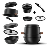 Gutes Werkzeug erleichtert jede Arbeit, und das gilt ganz sicher auch für die Küche. Die Zubereitung leckerer Gerichte erfordert oft eine umfangreiche Sammlung von Küchenutensilien und Pfannen, was zu einem Mangel an Stauraum und einer unordentlichen Küche führt. Wir waren davon überzeugt, dass hier Abhilfe geschaffen werden muss. Deshalb haben wir ein Pfannenset entwickelt, das nicht nur stolz auf der Arbeitsplatte präsentiert werden kann, sondern auch kompakt in Ihre Küchenschublade passt und eine multifunktionale Lösung für alle Ihre Kochfrustrationen bietet.