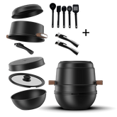 Nie wieder unordentliche Pfannenschubladen oder klebende Speisen mit dem CookingTotem. Unser komplettes Set hat alles, was Sie brauchen, um großartige Gerichte zu kochen und den Platz in Ihrer Küche optimal zu nutzen.